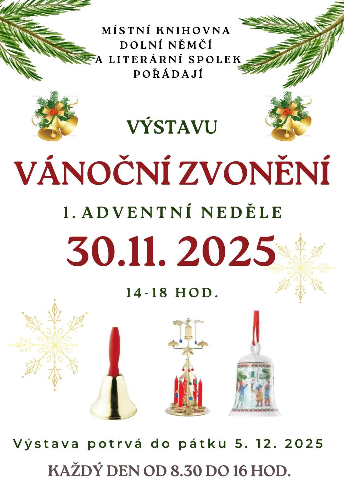 Místní knihovna Dolní Němčí a Literární spolek pořádá v neděli 5. 12. 2021 ve 14 hodin v knihovně Výstavu andělů. Hostem bude P. Petr Hofírek s úvodním slovem.